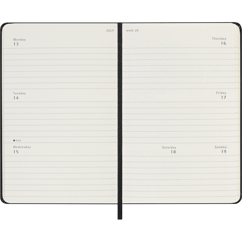 Kalendarz kieszonkowy (ok. A6, pocket) MOLESKINE, twarda okładka, tygodniowy, horyzontalny (144 str.), zakładka i elastyczna opaska do zamykania