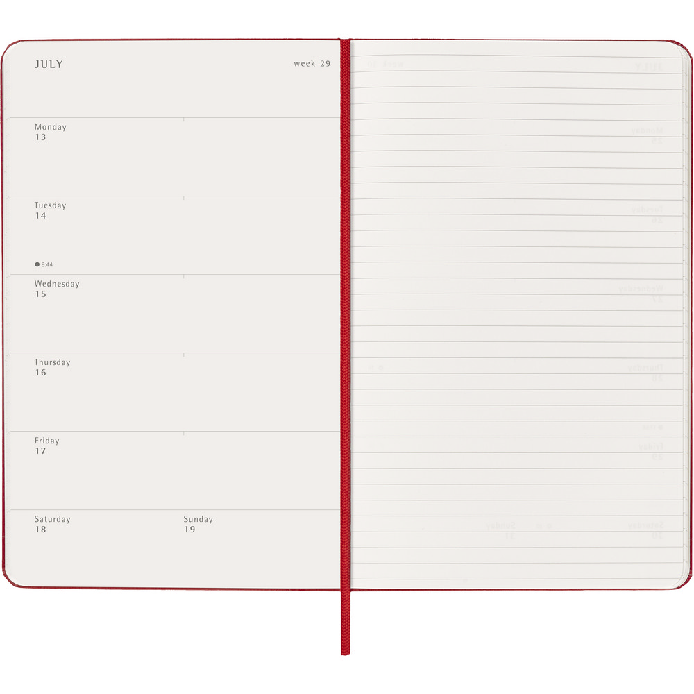Kalendarz duży (ok. A5, large) MOLESKINE z notatnikiem, twarda okładka, tygodniowy (144 str.), zakładka i elastyczna opaska do zamykania