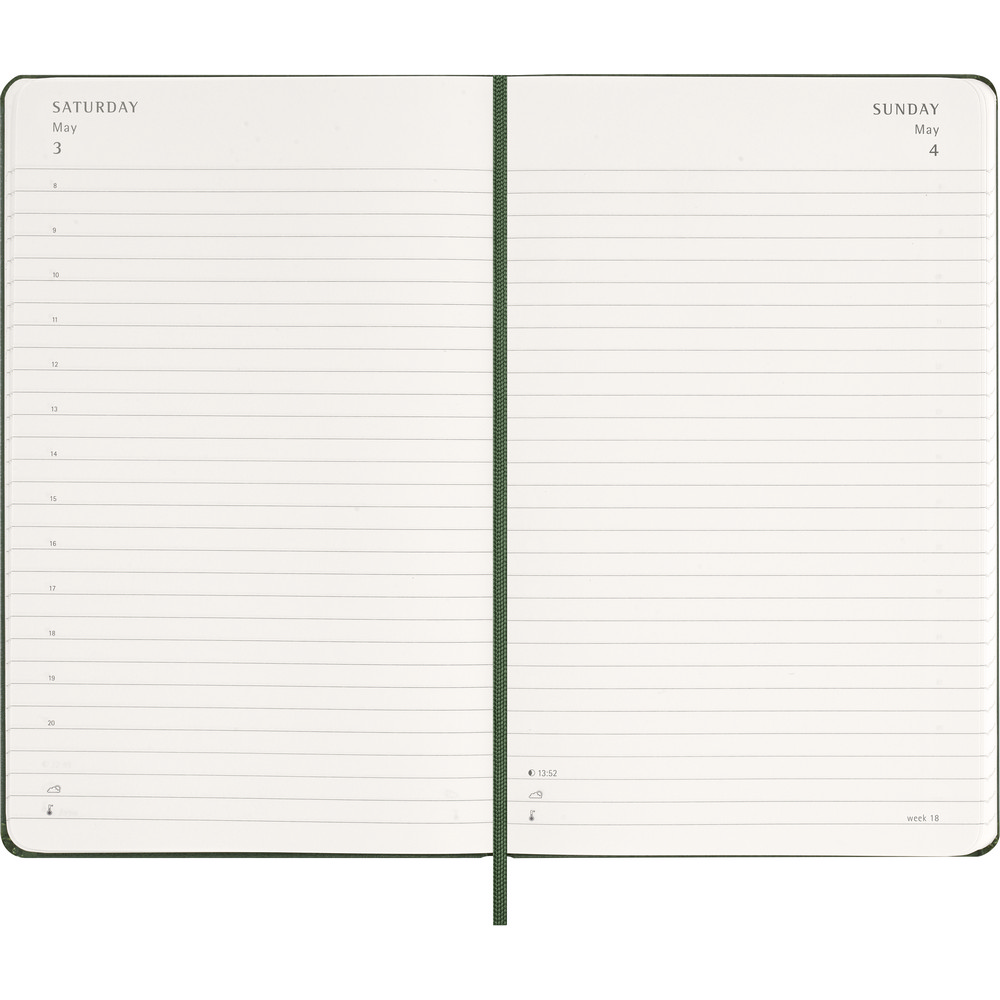 Kalendarz duży (ok. A5, large) MOLESKINE, twarda okładka, dzienny (400 str.), zakładka i elastyczna opaska do zamykania