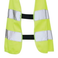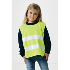 Kamizelka, rozmiar dziecięcy XXS, odpowiednia dla dzieci o wzroście od 90 do 140 cm, wykonana z RPET, całkowita zawartość materiałów z recyklingu obliczona na podstawie wagi całkowitej przedmiotu: 55%, zgodna z normą EN 17353:2020 typ AB3 oraz z rozporządzeniem UE 2016/425, ślad węglowy produktu: 0,67 kg CO2