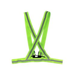 Kamizelka, szelki z szerokim zakresem regulacji, odpowiednie na wzrost 160-190 cm, zapięcie na klamrę zatrzaskową z miejscem pod znakowanie, połyskliwy pasek (do użytku promocyjnego)