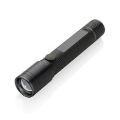 Latarka 3W o bardzo jasnym świetle, wodoodporna IP4, wiązka 100 lumenów sięgająca do 100 m, wysokiej jakości żarówka z 5 trybami świecenia, w tym SOS, wbudowany akumulator 500 mAh pozwala na około 4 godziny ciągłego świecenia, ładowana za pomocą USB, wykonana z aluminium z recyklingu z certyfikatem RCS, całkowita zawartość materiałów z recyklingu obliczona w oparciu o wagę całkowitą przedmiotu: 20%, ślad węglowy produktu: 1,22 kg CO2