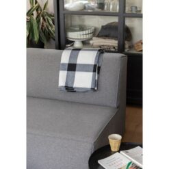 Koc w kratę, wykonany z dwuwarstwowego polaru o gramaturze 180 g/m2, wymiary 127×152 cm, ślad węglowy produktu: 4,34 kg CO2