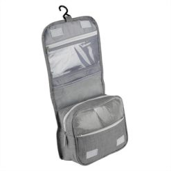 Kosmetyczka z wieloma przegrodami, przegroda główna na zamek błyskawiczny, 1 kieszeń siateczkowa, przezroczysta kieszeń oraz kieszeń przednia na zamek błyskawiczny, haczyk do powieszenia w komplecie