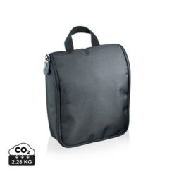 Kosmetyczka, wykonana z poliestru 1680D, posiada 8 przegródek oraz haczyk ze stali nierdzewnej, ślad węglowy produktu: 2,28 kg CO2