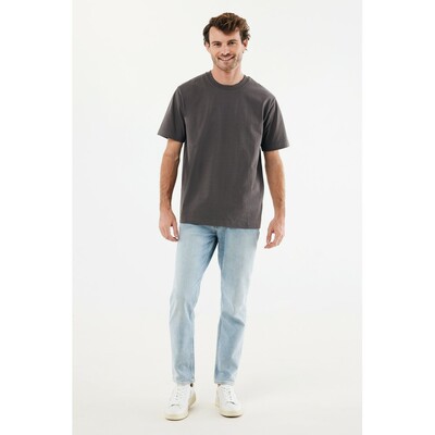 Koszulka, unisex, nowoczesny krój, okrągły dekolt, krótkie rękawy, wykonana w 50% z bawełny z recyklingu i w 50% z bawełny organicznej o gramaturze 220 g/m2, bez dodatku poliestru, posiada wbudowany znacznik AWARE™, który potwierdza wykorzystanie materiałów z recyklingu, posiada kod QR na metce, który prowadzi do cyfrowego paszportu produktu, 2% wpływów z każdego sprzedanego produktu jest przekazywane na rzecz Water.org