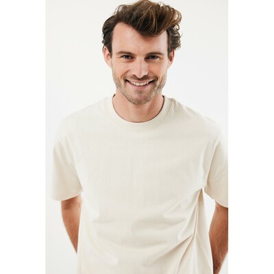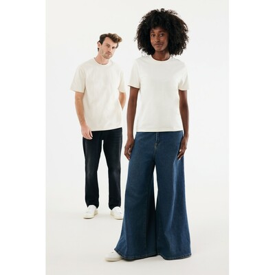Koszulka, unisex, nowoczesny krój, okrągły dekolt, krótkie rękawy, wykonana w 50% z bawełny z recyklingu i w 50% z bawełny organicznej o gramaturze 220 g/m2, bez dodatku poliestru, posiada wbudowany znacznik AWARE™, który potwierdza wykorzystanie materiałów z recyklingu, posiada kod QR na metce, który prowadzi do cyfrowego paszportu produktu, 2% wpływów z każdego sprzedanego produktu jest przekazywane na rzecz Water.org
