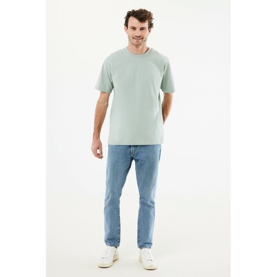 Koszulka, unisex, nowoczesny krój, okrągły dekolt, krótkie rękawy, wykonana w 50% z bawełny z recyklingu i w 50% z bawełny organicznej o gramaturze 220 g/m2, bez dodatku poliestru, posiada wbudowany znacznik AWARE™, który potwierdza wykorzystanie materiałów z recyklingu, posiada kod QR na metce, który prowadzi do cyfrowego paszportu produktu, 2% wpływów z każdego sprzedanego produktu jest przekazywane na rzecz Water.org