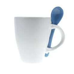 Kubek ceramiczny 300 ml z łyżeczką z nadrukiem Twojego logo, materiał: ceramika, kolor: niebieski