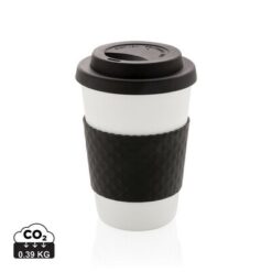 Kubek podróżny 270 ml, lekki, trwały i wielokrotnego użytku, wykonany z nadającego się w 100% do recyklingu materiału PP, silikonowe wieczko i uchwyt, odporny na temperaturę do 100 stopni Celsjusza, kubek można myć w zmywarce i używać w kuchence mikrofalowej, pasuje do większości ekspresów do kawy, ślad węglowy produktu: 0,39 kg CO2