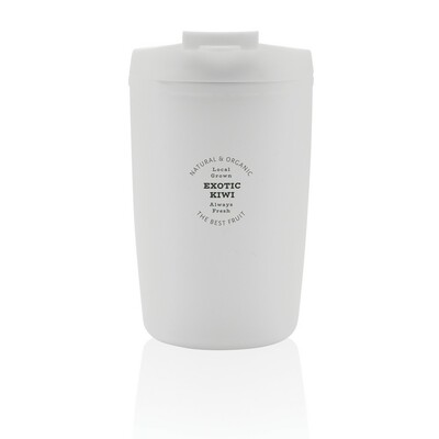 Kubek podróżny 300 ml z PP z recyklingu z nadrukiem Twojego logo, kolor: biały