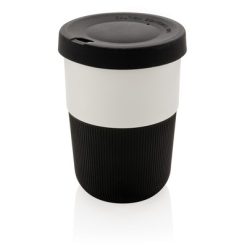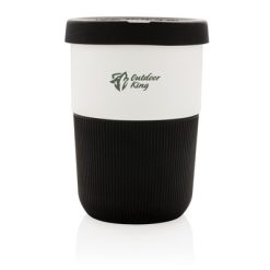 Kubek podróżny 380 ml, wykonany z PLA, silikonowe wieczko i uchwyt, nie zawiera melaminy, ślad węglowy produktu: 0,89 kg CO2