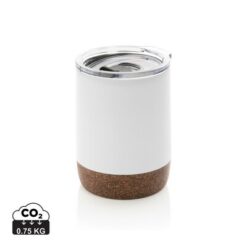 Korkowy kubek termiczny 180 ml z korkową podstawą, wykonany ze stali z recyklingu z certyfikatem RCS, całkowita zawartość materiałów z recyklingu obliczona na podstawie wagi całkowitej produktu: 69%, podwójne ścianki ze stali nierdzewnej z próżnią między ściankami, korkowa podstawa, pasuje do większości ekspresów do kawy, utrzymuje temperaturę napojów gorących do 10 godzin oraz zimnych do 15 godzin