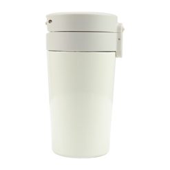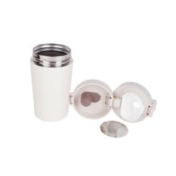 Kubek termiczny 300 ml z wyjmowanym sitkiem zatrzymującym fusy, które przyda się do zaparzania herbaty poza domem, posiada podwójne ścianki ze stali nierdzewnej z próżnią między ściankami, co spowalnia oddawanie temperatury na zewnątrz, zachowując funkcje termosu, wieczko z blokadą i przyciskiem otwarcia ustnika umożliwiającym obsługę jedną ręką, utrzymuje temperaturę napojów gorących do 15 godzin +leakproof