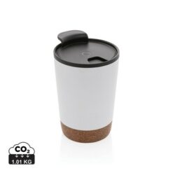 Kubek termiczny 300 ml, podwójne ścianki, wnętrze z PP z recyklingu z certyfikatem GRS, całkowita zawartość materiałów z recyklingu obliczona na podstawie wagi całkowitej produktu: 52%, korkowe elementy na zewnątrz, utrzymuje temperaturę napojów gorących do 4 godzin oraz zimnych do 6 godzin
