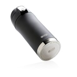 Kubek termiczny 300 ml, podwójne ścianki z próżnią między ściankami, wnętrze ze stali nierdzewnej 18/8, powlekany proszkowo czarny kolor cechujący się niezwykłą trwałością i odpornością na wyblaknięcie czy popękanie, ściana wewnętrzna pokryta miedzią o wysokim poziomie przewodnictwa, szczelny, zamykane wieczko, wyłącznie mycie ręczne, utrzymuje temperaturę napojów gorących do 15 godzin oraz zimnych do 24 godzin