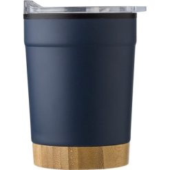 Kubek termiczny 300 ml z bambusowym elementem z nadrukiem Twojego logo, materiał: metal, plastik, bambus, kolor: granatowy