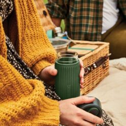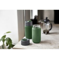 Kubek termiczny 340 ml Black+Blum z nadrukiem Twojego logo, materiał: szkło, silikon, kolor: zielony