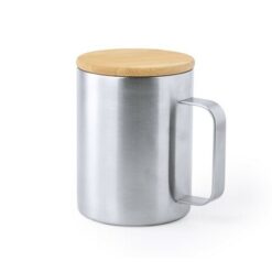 Kubek termiczny 350 ml z nadrukiem Twojego logo, materiał: bambus, stal nierdzewna, stal, kolor: srebrny