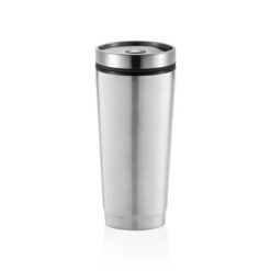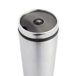 Kubek termiczny 350 ml, stal nierdzewna na zewnątrz, wnętrze z PP, wieczko z przyciskiem zamykającym zapobiegający wylaniu, nie wymaga obsługi oburącz, szczelny, utrzymuje temperaturę napojów gorących do 4 godzin