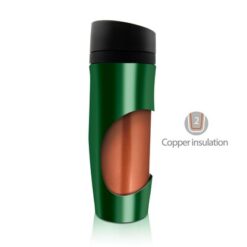 Kubek termiczny 375 ml Air Gifts, posiada podwójne ścianki ze stali nierdzewnej z miedzianą izolacją próżniową, co spowalnia oddawanie temperatury na zewnątrz, zachowując funkcje termosu, plastikowe wieczko z przyciskiem otwarcia/zamknięcia ustnika umożliwiającym obsługę jedną ręką, błyszczące wykończenie, utrzymuje temperaturę napojów gorących do 20 godzin +leakproof