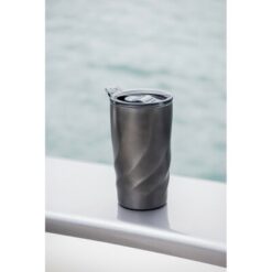 Kubek termiczny 400 ml BrandCharger Vortex Calix, leakproof, zakręcana nakrętka, zaprojektowany żeby przechowywać spienione napoje, nakrętka zawiera pętlę do noszenia, posiada podwójne ścianki ze stali nierdzewnej, co spowalnia oddawanie temperatury na zewnątrz, zachowując funkcje termosu, utrzymuje temperaturę napojów zimnych do 12 godzin, a gorących do 4 godzin, nadaje się do mycia w zmywarce, produkt wykonany ze stali nierdzewnej 304 pochodzącej z recyklingu i tritanu