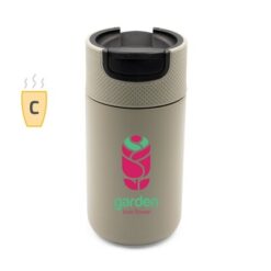 Kubek termiczny 400 ml Air Gifts, posiada podwójne ścianki ze stali nierdzewnej z próżnią między ściankami, co spowalnia oddawanie temperatury na zewnątrz, zachowując funkcje termosu, plastikowe wieczko z zamknięciem umożliwiającym obsługę jedną ręką, matowe wykończenie, utrzymuje temperaturę napojów gorących do 10 godzin +leakproof