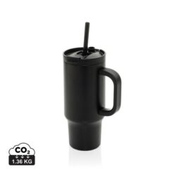 Kubek termiczny 480 ml, podwójne ścianki z próżnią pomiędzy dzięki czemu kubek posiada funkcję termosu, posiada słomkę i szeroki otwór do picia, wykonany z materiałów z recyklingu, całkowita zawartość materiałów z recyklingu obliczona na podstawie wagi całkowitej produktu: 73%