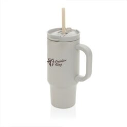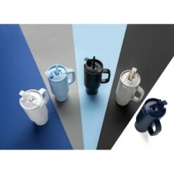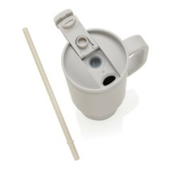 Kubek termiczny 480 ml, podwójne ścianki z próżnią pomiędzy dzięki czemu kubek posiada funkcję termosu, posiada słomkę i szeroki otwór do picia, wykonany z materiałów z recyklingu, całkowita zawartość materiałów z recyklingu obliczona na podstawie wagi całkowitej produktu: 73%