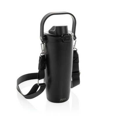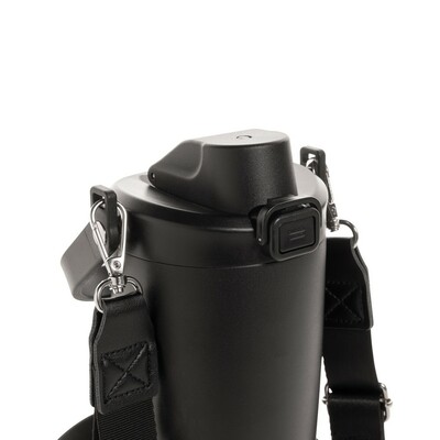 Kubek termiczny 600 ml, posiada ustnik, słomkę oraz pasek do noszenia, nie wymaga obsługi oburącz, podwójne ścianki ze stali nierdzewnej z próżnią pomiędzy, wykonany ze stali nierdzewnej z recyklingu z certyfikatem RCS