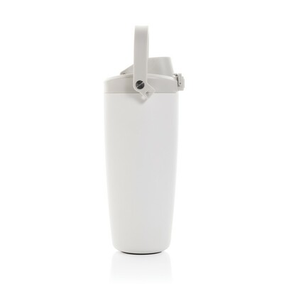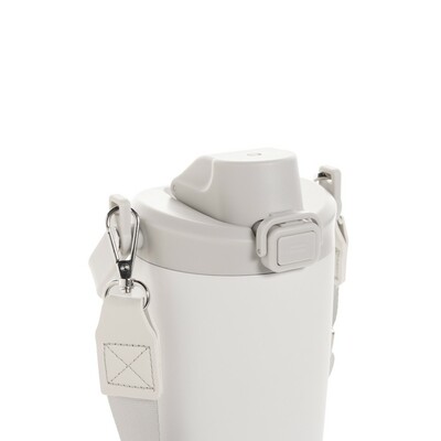 Kubek termiczny 600 ml, posiada ustnik, słomkę oraz pasek do noszenia, nie wymaga obsługi oburącz, podwójne ścianki ze stali nierdzewnej z próżnią pomiędzy, wykonany ze stali nierdzewnej z recyklingu z certyfikatem RCS