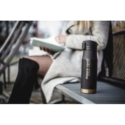 Kubek termiczny 600 ml Mauro Conti, posiada podwójne ścianki ze stali nierdzewnej z miedzianą izolacją próżniową, co spowalnia oddawanie temperatury na zewnątrz, zachowując funkcje termosu, wieczko z blokadą i przyciskiem otwarcia ustnika umożliwiającym obsługę jedną ręką, utrzymuje temperaturę napojów gorących do 15 godzin +leakproof