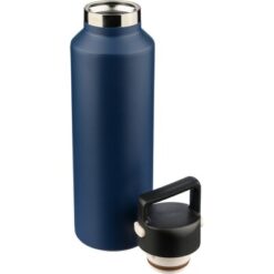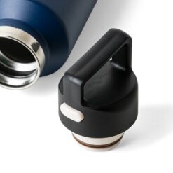 Butelka termiczna 600 ml, posiada podwójne ścianki ze stali nierdzewnej z próżnią między ściankami, co spowalnia oddawanie temperatury na zewnątrz, zachowując funkcje termosu, uchwyt ułatwiający przenoszenie, zawiera przyciski po bokach do otwierania pokrywki, pakowany pojedynczo w brązowe kartonowe pudełko, produkt wykonany z recyklingowej stali nierdzewnej (wewnątrz 304 / na zewnątrz 201) z pokrywką z PP, utrzymuje temperaturę napojów gorących do 4 godzin