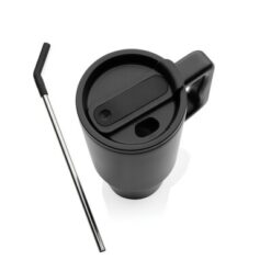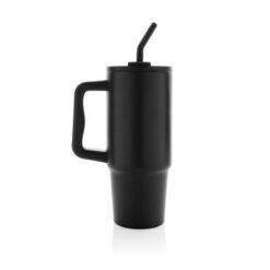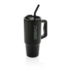 Kubek termiczny 900 ml, wykonany ze stali nierdzewnej z recyklingu, podwójne ścianki ze stali nierdzewnej z próżnią pomiędzy, zakręcane wieczko z dziubkiem i słomką, zalecane mycie ręczne, ślad węglowy produktu: 0 kg CO2