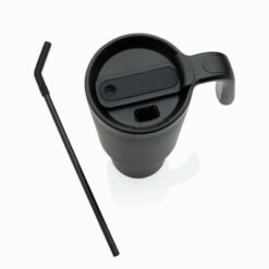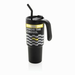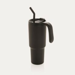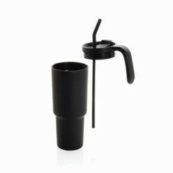 Kubek termiczny 900 ml, wykonany ze stali nierdzewnej z recyklingu, podwójne ścianki ze stali nierdzewnej z próżnią pomiędzy, zakręcane wieczko z dziubkiem i słomką, zalecane mycie ręczne