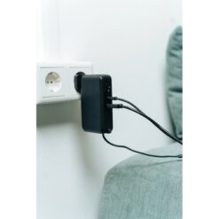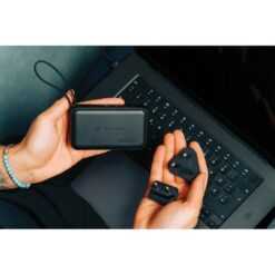 Ładowarka 2 w 1 GAN 65W, power bank do laptopa 10000 mAh, ładowarka ścienna, wykorzystuje technologię GAN zwiększającą wydajność ładowania, wykonana z PC z recyklingu z certyfikatem RCS, adapter podróżny (2 wtyczki w komplecie), funkcja szybkiego ładowania, wejście USB-C, 2 wyjścia USB-C oraz wyjście USB, zintegrowany kabel USB-C, możliwość ładowania do 3 urządzeń jednocześnie, całkowita zawartość materiałów z recyklingu obliczona na podstawie wagi całkowitej przedmiotu: 22%