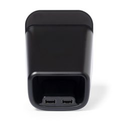 Ładowarka bezprzewodowa 15W, pojemnik na przybory do pisania, stojak na telefon z nadrukiem Twojego logo, materiał: plastik, kolor: czarny