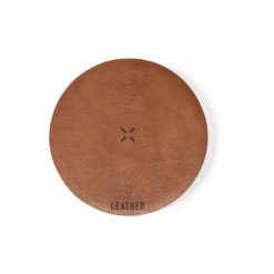 Ładowarka bezprzewodowa 15W z nadrukiem Twojego logo, materiał: skóra, kolor: brązowy