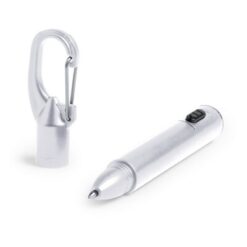 Latarka 1 LED, długopis i karabińczyk z nadrukiem Twojego logo, materiał: plastik, kolor: srebrny