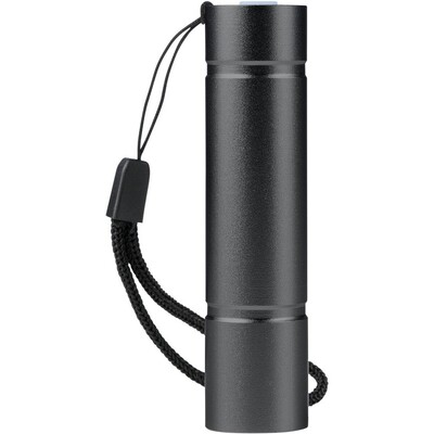 Latarka COB z nadrukiem Twojego logo, materiał: aluminium, poliester, kolor: czarny