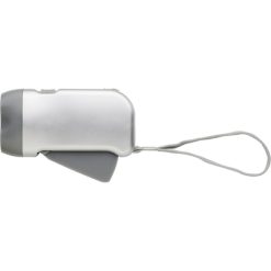 Latarka na dynamo 2 LED z nadrukiem Twojego logo, materiał: plastik, nylon, kolor: srebrny