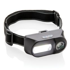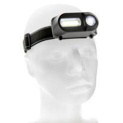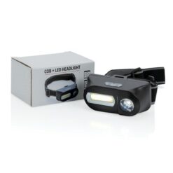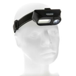 Latarka na głowę COB LED z nadrukiem Twojego logo, materiał: plastik, kolor: czarny