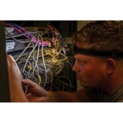 Latarka na głowę z 2 światłami, światło COB 180 lumenów do oświetlania przedmiotów w pobliżu, światło LED 90 lumenów o zasięgu świecenia do 80m, 3 tryby świecenia (jasny, przyciemniony, migający), wykonana z ABS, czas świecenia do 3 godzin, elastyczny, regulowany pasek, baterie w komplecie, ślad węglowy produktu: 0,81 kg CO2