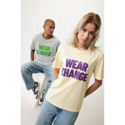 Koszulka, unisex, regularny krój, okrągły dekolt, krótkie rękawy, wykonana w 30% z bawełny z recyklingu i w 70% z bawełny organicznej o gramaturze 160 g/m2, posiada wbudowany znacznik AWARE™, który potwierdza wykorzystanie materiałów z recyklingu, posiada kod QR na metce, który prowadzi do cyfrowego paszportu produktu, 2% wpływów z każdego sprzedanego produktu z kolekcji Impact jest przekazywane na rzecz Water.org, ślad węglowy produktu: 3,31 kg CO2