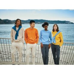 Lekki sweter, unisex, regularny krój, okrągły dekolt, długie rękawy, wykonana w 30% z bawełny z recyklingu i w 70% z bawełny organicznej o gramaturze 280 g/m2, posiada wbudowany znacznik AWARE™, który potwierdza wykorzystanie materiałów z recyklingu, posiada kod QR na metce, który prowadzi do cyfrowego paszportu produktu, 2% wpływów z każdego sprzedanego produktu z kolekcji Impact jest przekazywane na rzecz Water.org