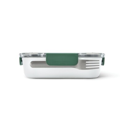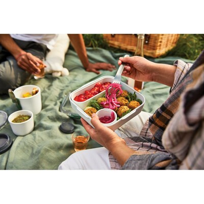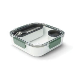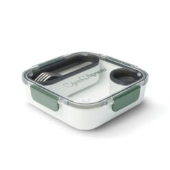 Pudełko śniadaniowe, zawiera wewnętrzny pojemnik, pojemnik na sos, widelec ze stali nierdzewnej, można myć w zmywarce i używać w kuchence mikrofalowej