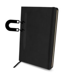 Magnetyczny notatnik A5 | Aurora z nadrukiem Twojego logo, materiał: pu, papier, kolor: czarny