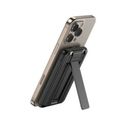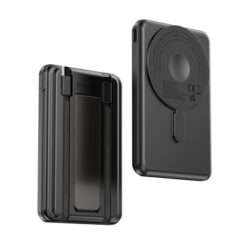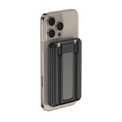 Power bank 5000 mAh, magnetyczna ładowarka bezprzewodowa 15W, szybkie ładowanie do 20W za pomocą kabla, zintegrowany stojak na telefon, wykonany z ABS z recyklingu z certyfikatem RCS, całkowita zawartość materiałów z recyklingu obliczona na podstawie wagi całkowitej przedmiotu: 24%