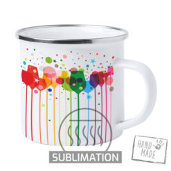 Metalowy kubek 380 ml pod sublimację, drobne niedoskonałości nawiązują do ręcznie wykonywanych kubków, produktu nie należy myć w zmywarce