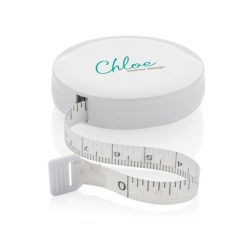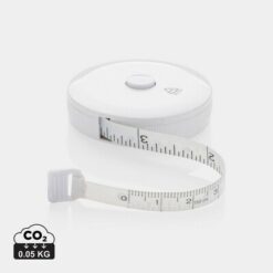 Miara do ciała 1,5 m/60”, taśma o szerokości 8 mm, przycisk stop, wykonana z ABS z recyklingu z certyfikatem RCS i włókna szklanego, całkowita zawartość materiałów z recyklingu obliczona w oparciu o wagę całkowitą przedmiotu: 64%, w pudełku z papieru kraftowego z certyfikatem FSC® mix, ślad węglowy produktu: 0,05 kg CO2